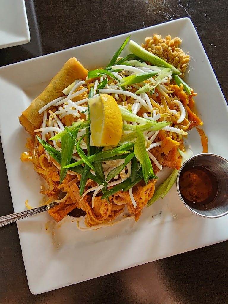 Smile Thai seemed to be on the sweeter side of Thai curry, but the flexor was delicious! Has the vegetable summer rolls, filled with avocado slides, of which I have not found at other places, and they were on point! The yellow Thai was my favorite, I would order multiple of that dish because you will want to eat it all! The Pad Thai was tasty, a little heavy on the sauce but I am happy with the fact that it wasn't over powered by peanut flavor, this place will not disappoint.