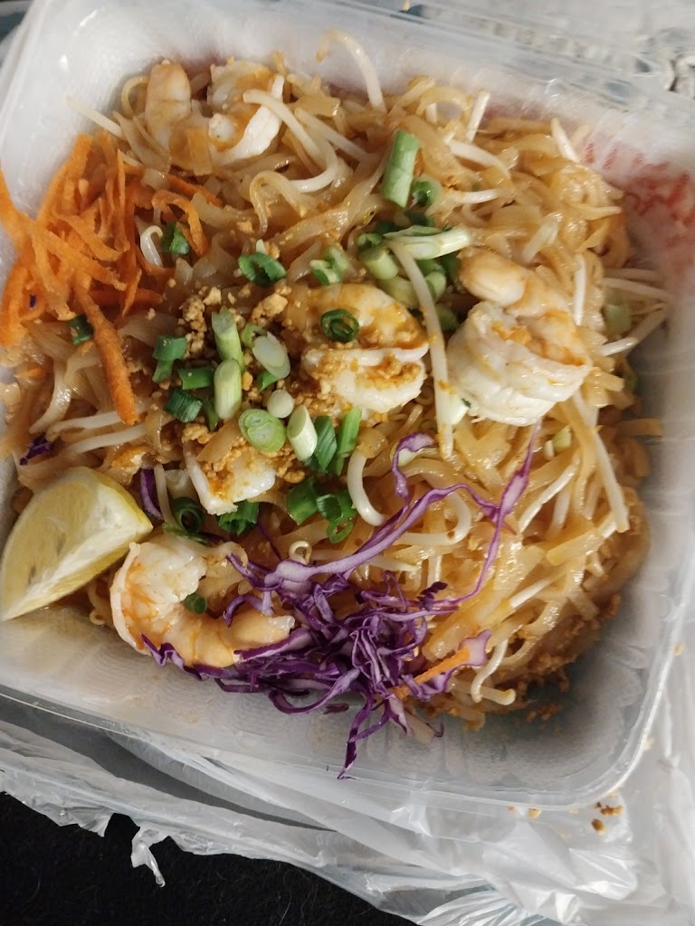 Best Thai food in town. The glass noodles are flavorful but mild with huge portion and lots of your choice of meats or vegetarian. I pay a little more and get shrimp, chicken AND pork. Be aware the pork is not Chinese style bar-b-q pork but fresh white meat that looks a lot like the chicken so donβt think as I did that they got your order wrong. My wife also likes their vegetarian non-cooked fresh spring rolls which she prefers to fried egg rolls, especially as she loves cilantro. Note that they are only open Monday-Friday; no weekends.