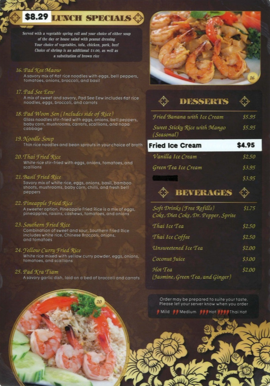Can’t dine in anymore however, hands-down no Thai food has ever come close, except for one place in Dallas everything on the menu top-notch!